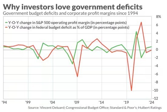 削减浪费性的政府支出是一个令人钦佩的目标。但投资者不应该对公共赤字和私人利润之间的关系视而不见。值得注意的是,Deluard预测今年晚些时候美国股市将出现熊市。